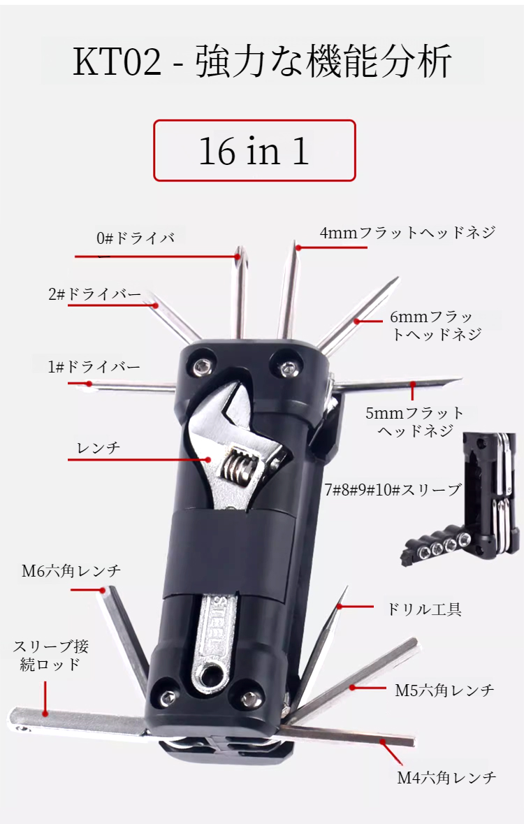 ● 多機能設計で自転車やモーターバイクのメンテナンスに最適、様々な工具が1セットにまとめられ、持ち運びも便利です。